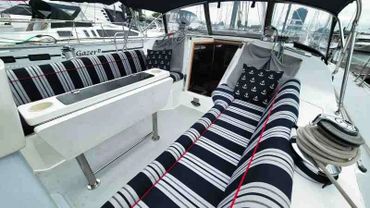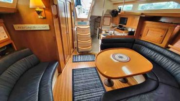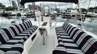 Vita Grata is a clean and comfortable yacht built in America. She has plenty of room on deck where most people like to congregate, whether on the bow or in the cockpit. But for those who might want a break, the cabin area has a nice sitting area and a head (bathroom).